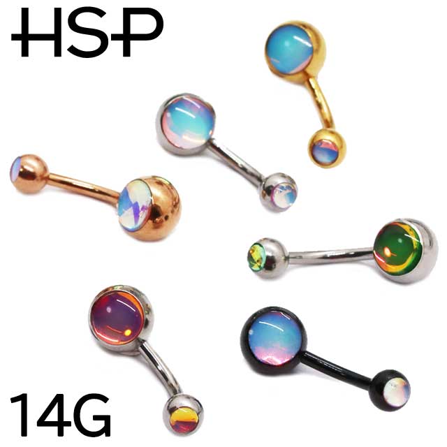 ヘソピアス イリディセントストーン ダブルジュエル バナナバーベル 【 ボディピアス へそピ ヘソピ ボディーピアス ボディピ サージカルステンレス アレルギー プリズム 】