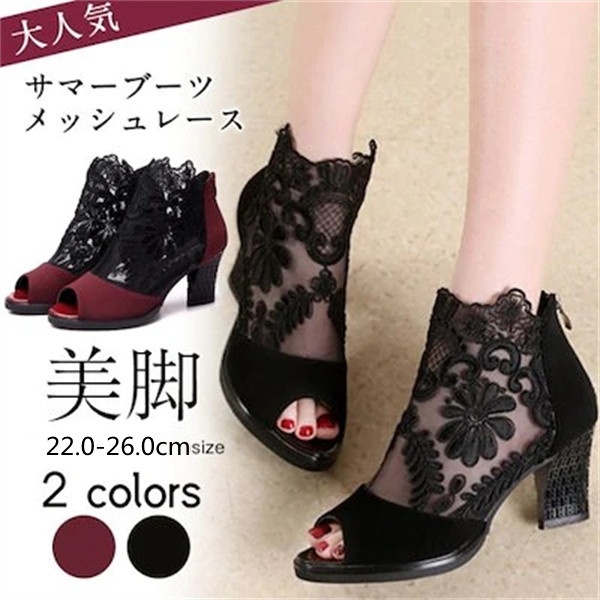 レースでヌーディーな足元に ヒール7cm 美脚サンダル パーティー 結婚式 カジュアル ブーツサンダル サマーブーツ サンダル 靴 美脚 レディース 靴