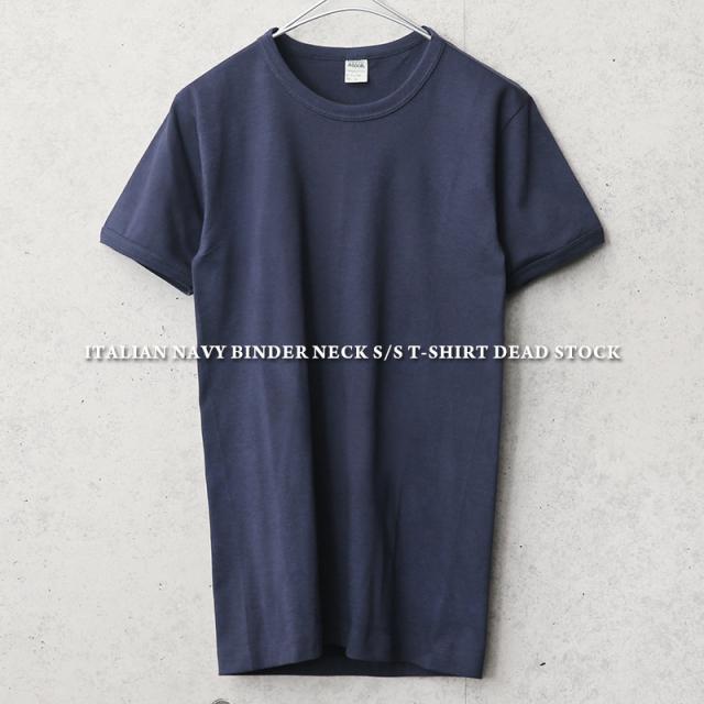 実物 新品 デッドストック イタリア海軍 バインダーネック S/S Tシャツ【Cx】【I】|メンズ 半袖 無地 トップス タイト 細め ネイビー 紺 アンダーシャツ 古着 ファッション おしゃれ