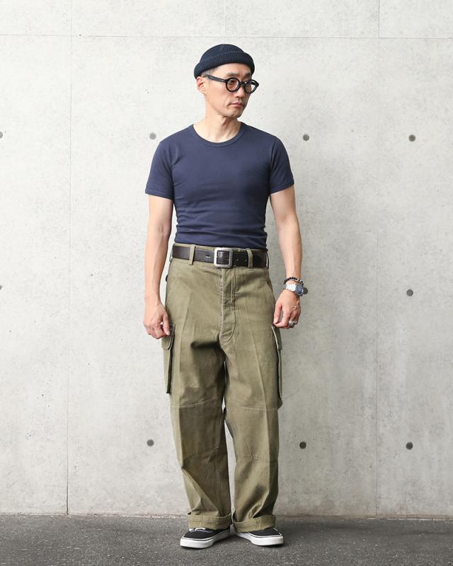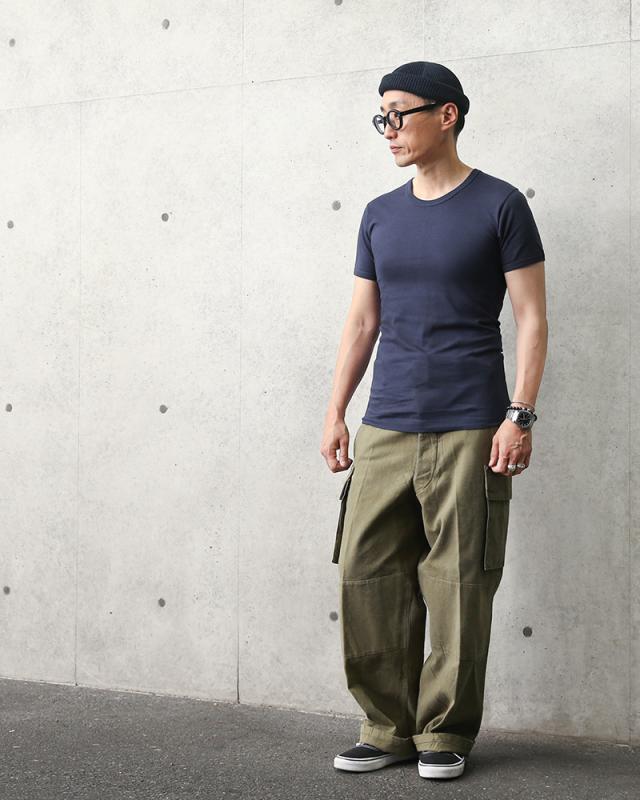 イタリア海軍にて採用されていたデッドストックのバインダーネック半袖Tシャツです。デイリーコーディネートに取り入れやすいスッキリとしたきれいなシルエット。フィット感がありますのでTシャツのインナーとしてレイヤードも楽しめる着回しの幅が広がるアイテムです。伸びにくく耐久性にも優れているバインダーネックが採用されており、袖口も同様にバインダー始末で長く使える作りです。着心地が良いコットン100%素材で、動きやすさも兼ね備えたイタリア軍の希少な一枚です。