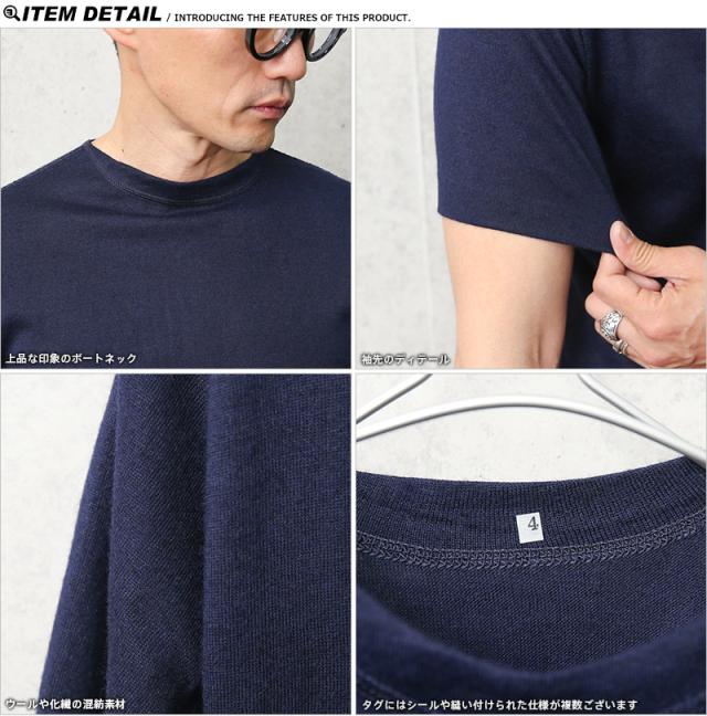 イタリア海軍にて採用されていたデッドストックのボートネック半袖Tシャツです。ウールと化繊の混紡素材を使用しており、見た目の素材感も上品な印象を与えてくれるTシャツで、デイリーコーディネートに取り入れやすい程よいゆとりのあるきれいなシルエットです。首元には特徴的なボートネックがクルーネックとはまた一味違う雰囲気で洗練された印象に映るTシャツです。シンプルなデザインですが、一般的なTシャツとは全く違う素材感やディテールがファッション性に優れたデザインです。一枚での着用もオススメな雰囲気のあるイタリア軍の希少な一枚です。