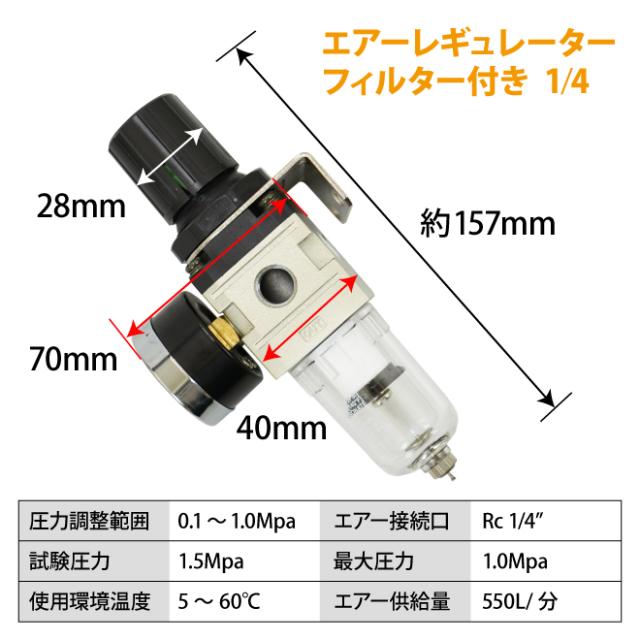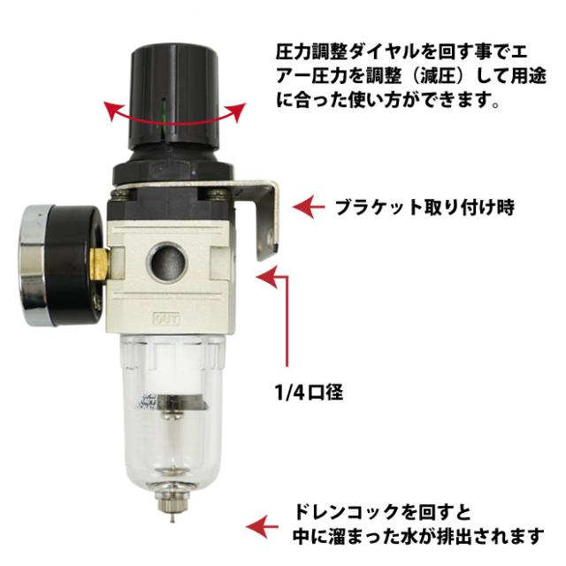レギュレーター付 エアーフィルター Rc 1/4 エアーレギュレーター ウォーターセパレーター エアードライヤー KIKAIYA