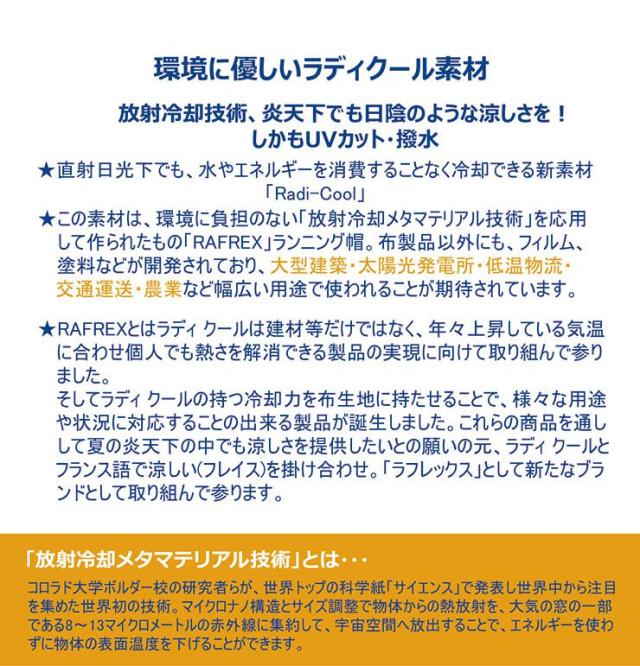世界初 放射冷却素材 Radi-Cool 帽子 ランニング帽 キャップ ラディクール 冷感 UVカット 撥水 クール 冷たい 夏 涼しい スポーツ ラフレックス 熱中症対策(代引不可)【送料無料】【メール便配送】