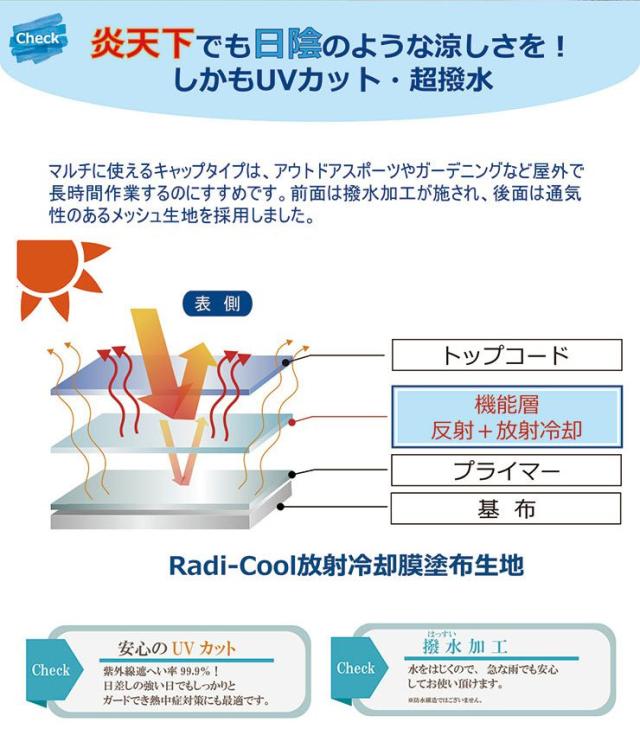 本体:ポリエステル100%(Radi-Cool放射冷却膜塗布)