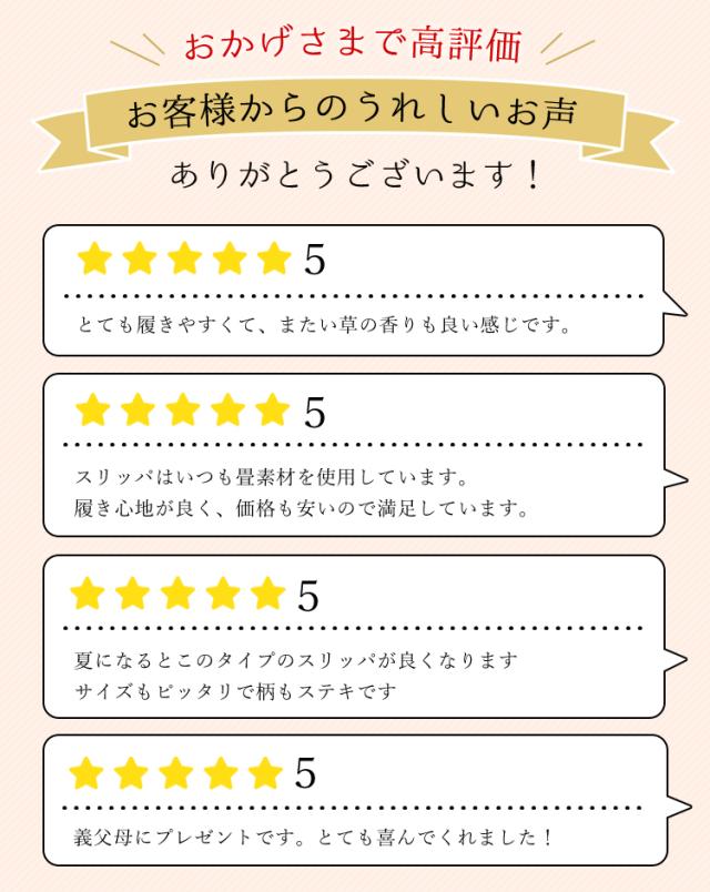 - 畳スリッパを私と息子の為に、購入しました。 畳スリッパを履くと、足裏が気持ち良いです。 買って良かったです。