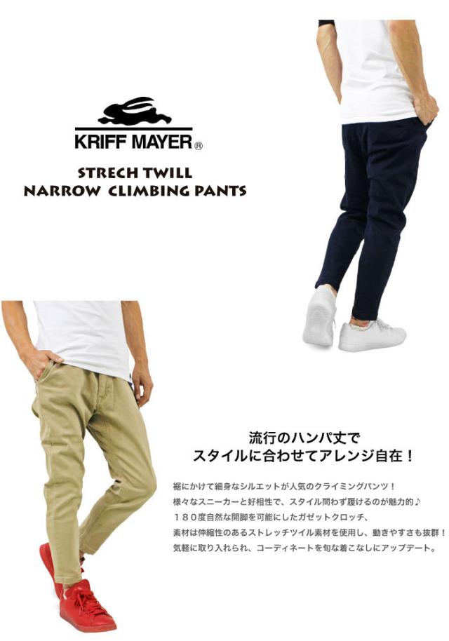 KRIFF MAYER クリフメイヤー タイトフィット ストレッチツイル ナロー クライミングパンツ 9分丈 テーパード アンクル丈 ナローパンツ メンズ 1644011【裾上げ不可】