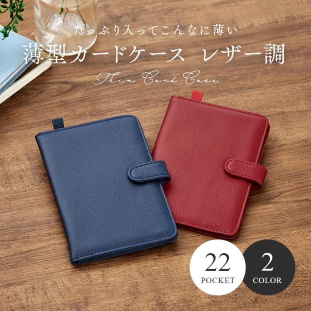 カードケース 薄型 20枚収納 メンズ レディース スリム 薄い コンパクト 軽量 二つ折り レザー調 薄型カードケース 【メール便送料無料】 軽い 無地 シンプル おしゃれ カード レシート クーポン 大容量 収納 ポケット ループ付き 紺 ネイビー ワインレッド agesugi_sfa