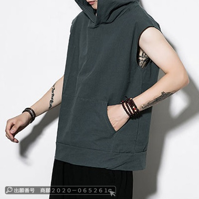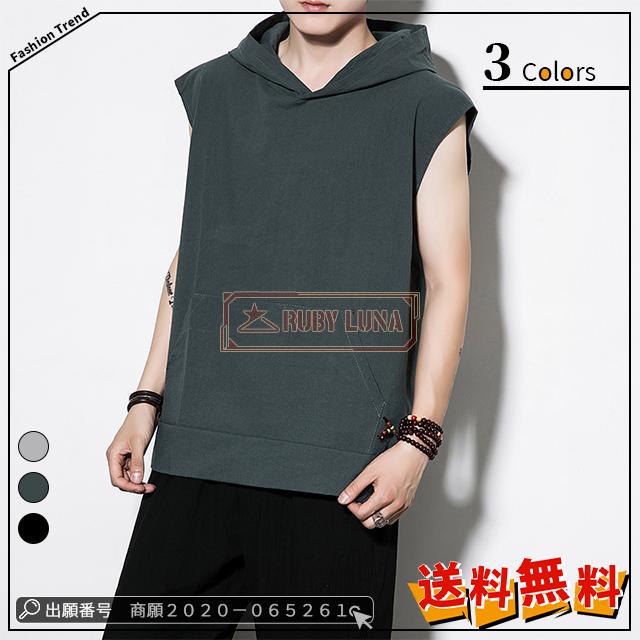 赤字覚悟 送料無料 メンズ ノースリーブパーカー 大きいサイズ 吸汗 速乾 Tシャツ 袖なし 運動着 タンクトップ 夏物 ベスト カジュアル スポーツTシャツ フード付き おしゃれ