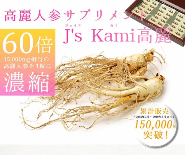 サプリメント J´s Kami高麗 10カプセル 265mg×10 常温便 冷蔵便 送料無料 高濃度 高麗人参エキス粉末 高麗人参 紅参 6年根 ジンセノサイド サポニン サプリ 健康 美容 滋養強壮 更年期