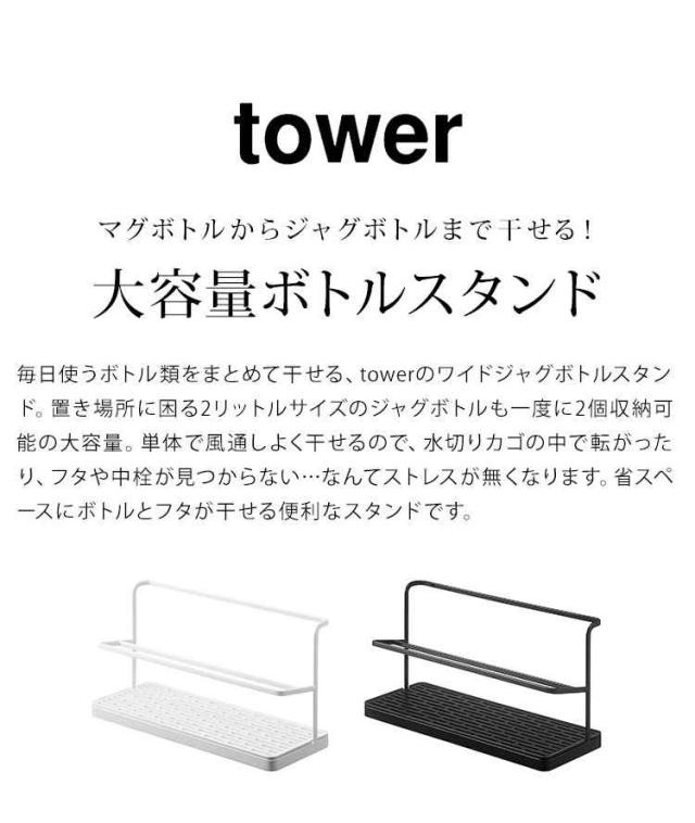 ボトル 水切り ボトルスタンド 水切りスタンド 山崎実業 タワー キッチン 大容量ボトルスタンド マグボトル 水筒 500ml~2L シンプル おしゃれ スタイリッシュ tower キッチン雑貨 グラス 哺乳瓶 乾燥 マグ ホワイト ブラック yamazaki 5409 5410 便利 キッチン収納