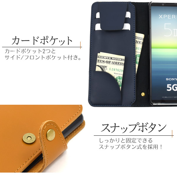 スマホケース Xperia5 II SO-52A SOG02 A002SO 手帳型 牛革 携帯ケース 無地 滑らか質感 カード落下防止 フラップ付き ベーシック 上品 お洒落 可愛い シンプル オシャレ スマホアクセサリー おしゃれ スマホカバー かわいい auスマホ スマートフォンケース