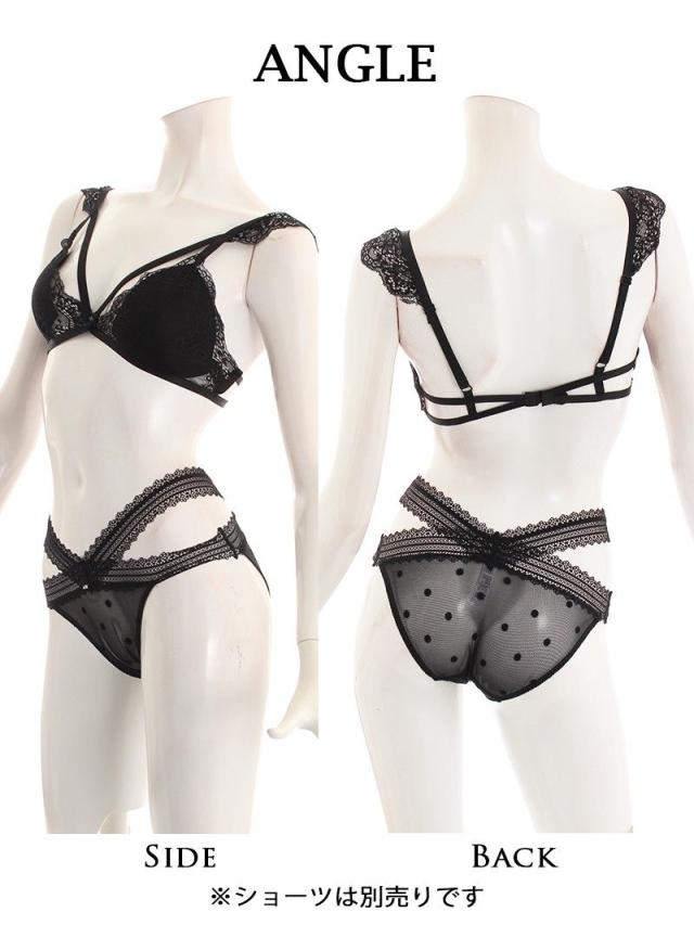 ☆クロスコードが色気を際立たせるSEXYランジェリーは繊細なレースデザインの黒ブラジャー