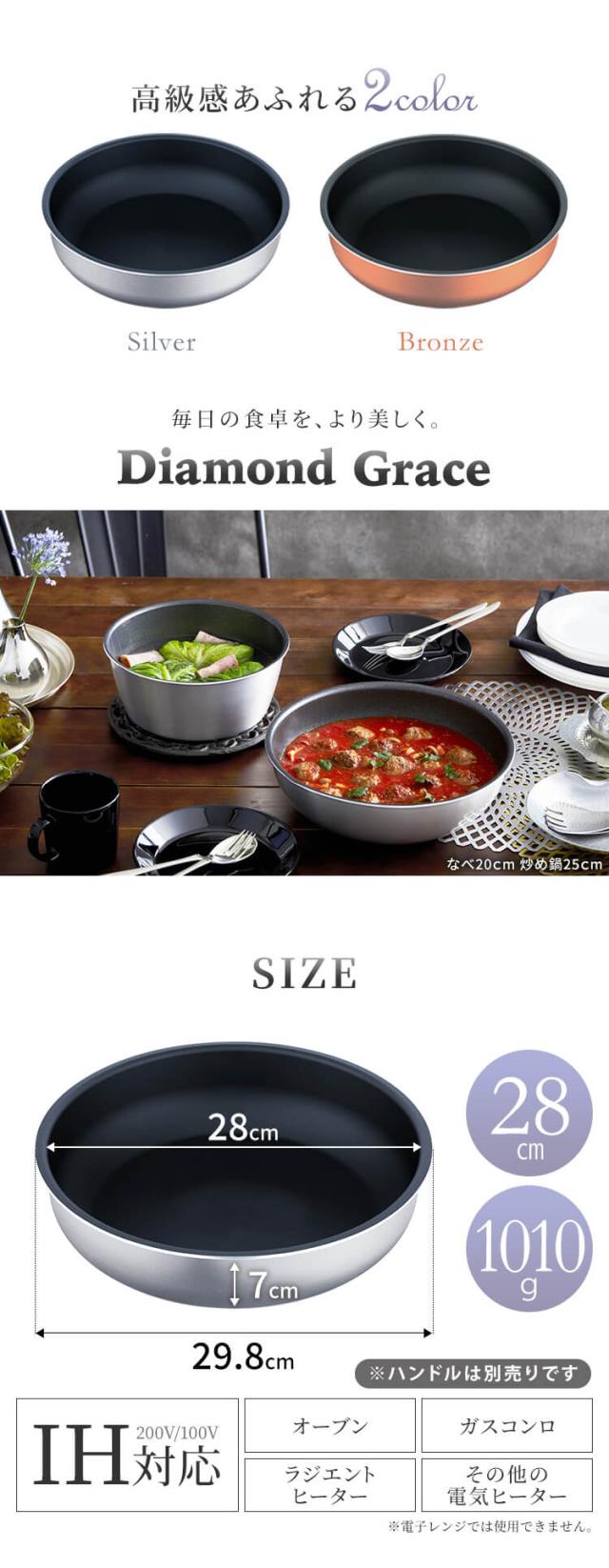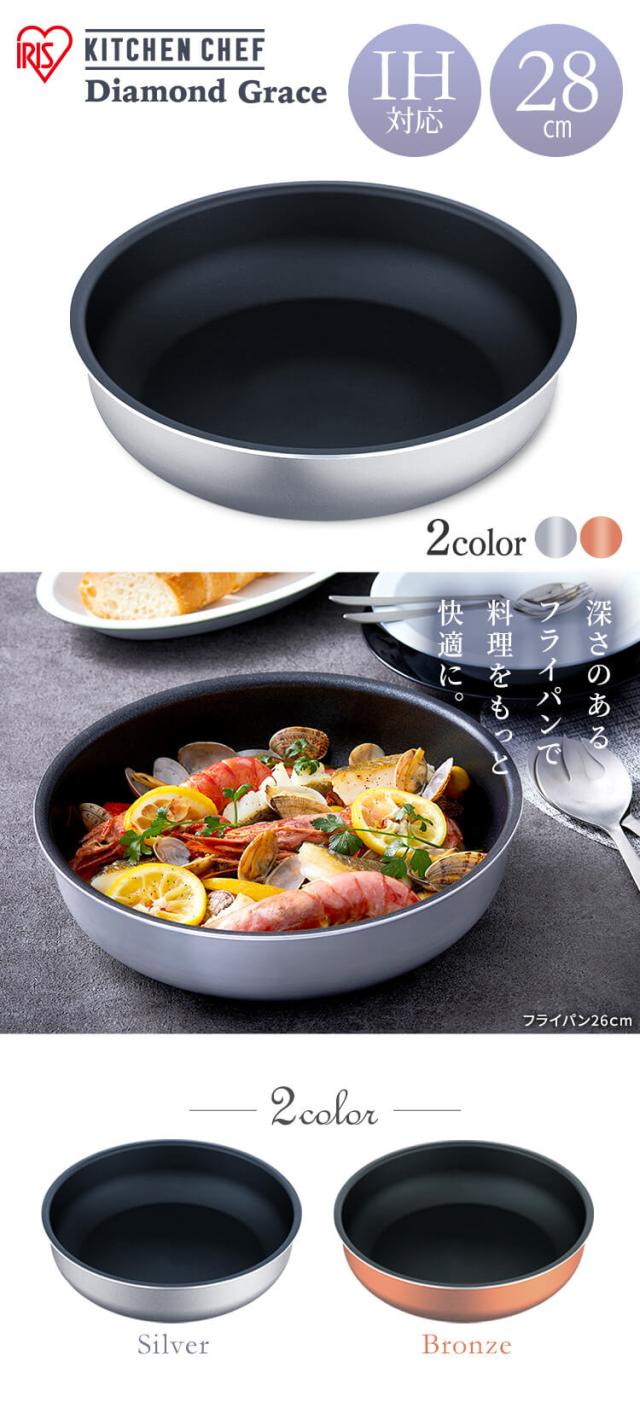 フライパン アイリスオーヤマ IH対応 ガス火 新生活 28cm ダイヤモンドグレイス フライパン 28cm DG-S28F シルバー ブロンズ 深型 単品 ハンドル別売り ダイヤモンドコート フライパン フッ素 コーティング IH ガス火 フライパン 送料無料 母の日