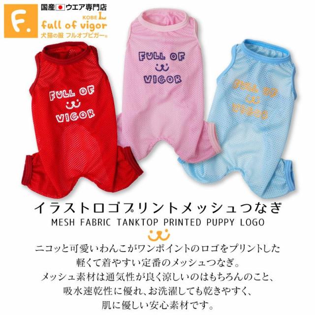 ニコッと可愛いわんこがワンポイントのロゴをプリントした軽くて着やすい定番のメッシュつなぎ。