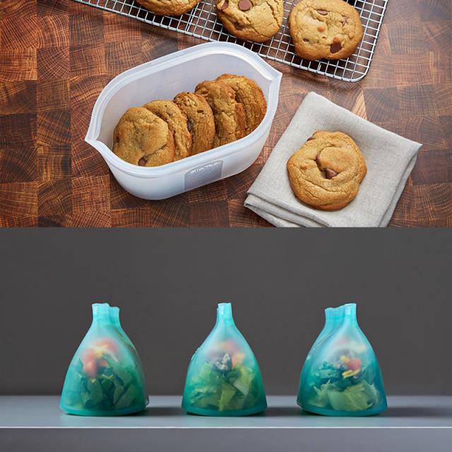 電子レンジ、湯煎、冷凍など、様々な調理方法や保存方法に対応するシリコンバッグ『Zip Top ディッシュ L』です。とても丈夫で洗ってくり返し使うことができるので、お財布にも環境にもやさしいエコな保存袋です。自立もするのでランチボックス代わりとしてもお使いいただけます。
