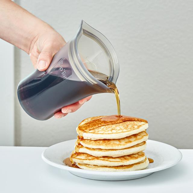 液体を入れても安定して自立するので、スープや手作りドレッシングなどにもぴったり。口をすぼめれば注ぎやすいので、煮汁を切る際などにもストレスフリーにお使いいただけます。