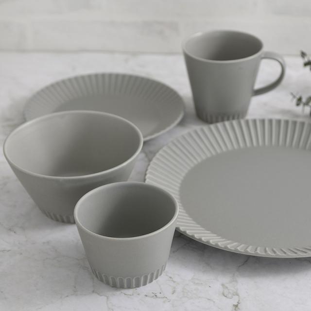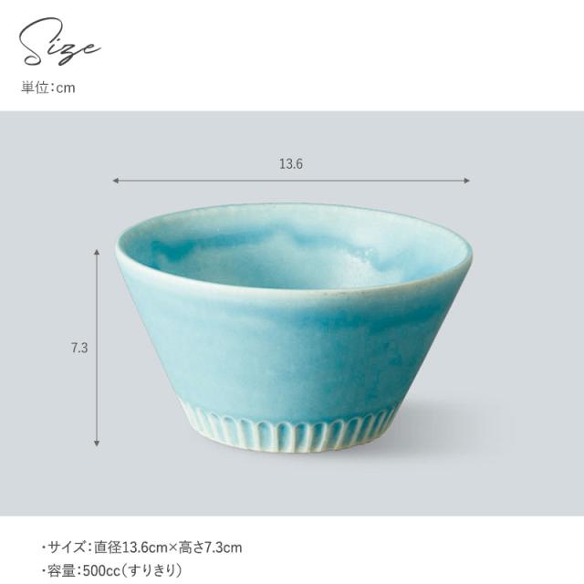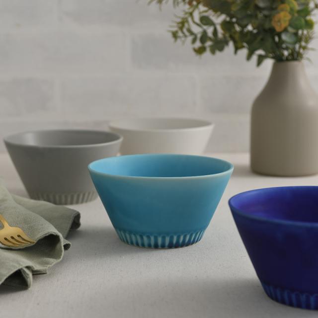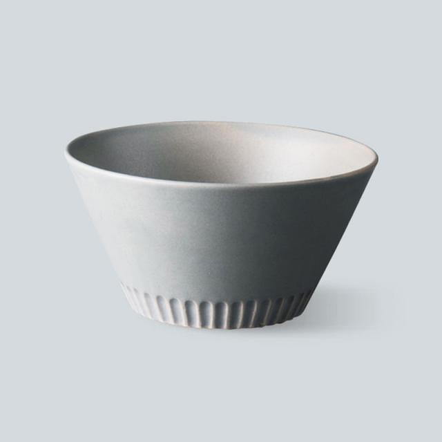 ボトムに象られたプリーツのような凹凸が特徴的なデザイン。ごはん用のお茶碗をはじめ、スープやデザート用など、幅広いジャンルでお使いいただけるサイズ感です。