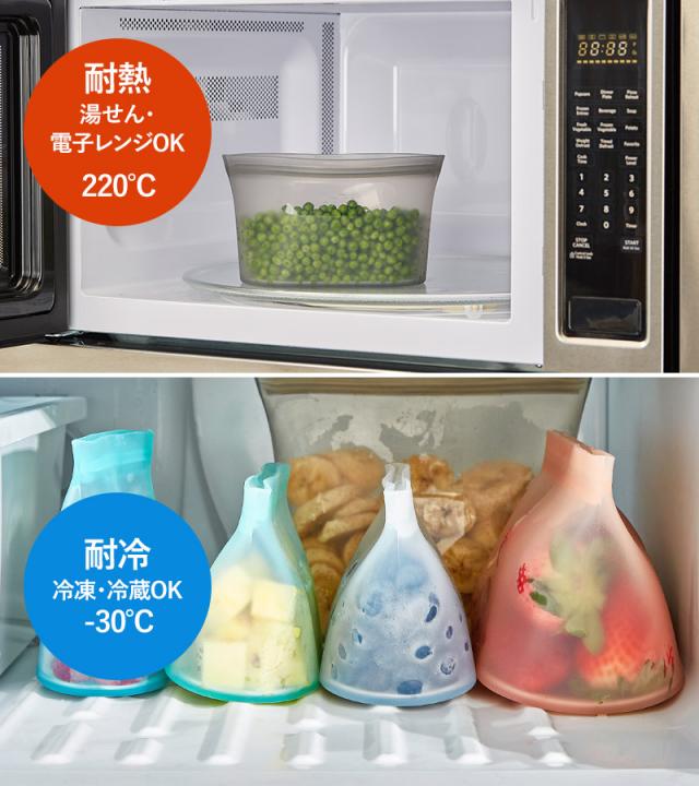 冷凍保存にもレンジにも対応 洗って何度も使えるシリコン保存袋