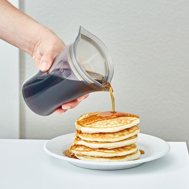 液体を入れても安定して自立するので、スープや手作りドレッシングなどにもぴったり。口をすぼめれば注ぎやすいので、煮汁を切る際などにもストレスフリーにお使いいただけます。