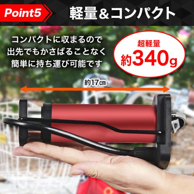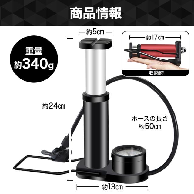 ・コンパクトで持ち運びに便利な圧力計付きの空気入れです