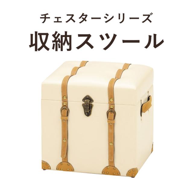 CHESTER SEIRES チェスターシリーズ 収納スツール 幅40cm (スツール 収納 センス 遊び心 トランク型 アンティーク 上品 合成皮革 アイボリー ダークブラウン ライトブラウン おしゃれ おすすめ)