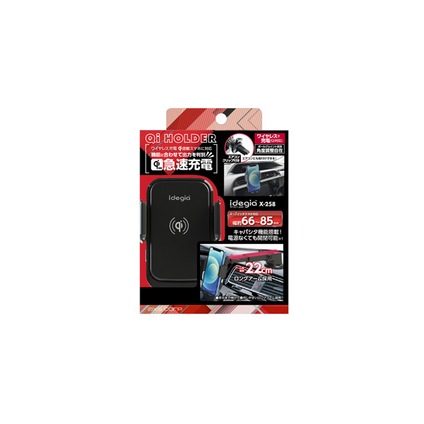 アークス ロングアームQiホルダー エアコンクリップ付き 自動開閉 ブラック 急速充電 ゲル吸盤 AC取付 車内 スマホホルダー X-258