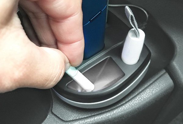 ●充電チェッカーLEDライトが、ヒートスティック吸殻入れの位置を照らす。