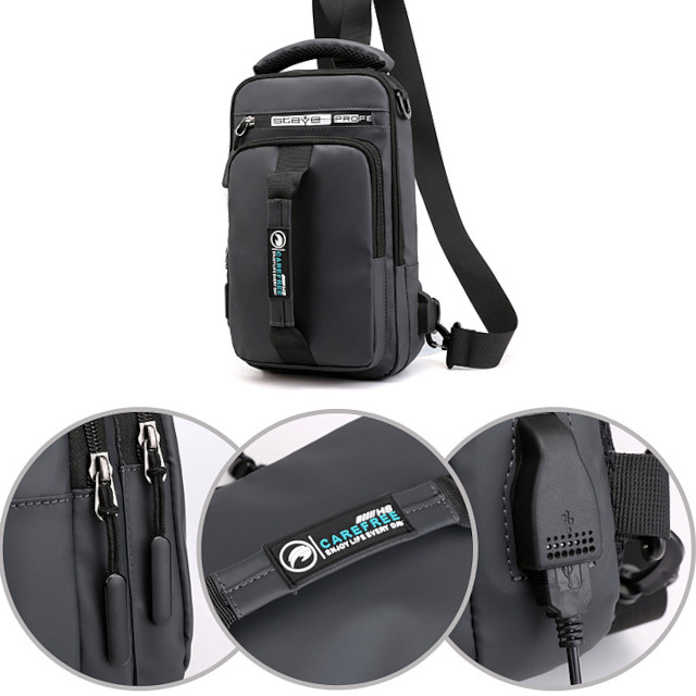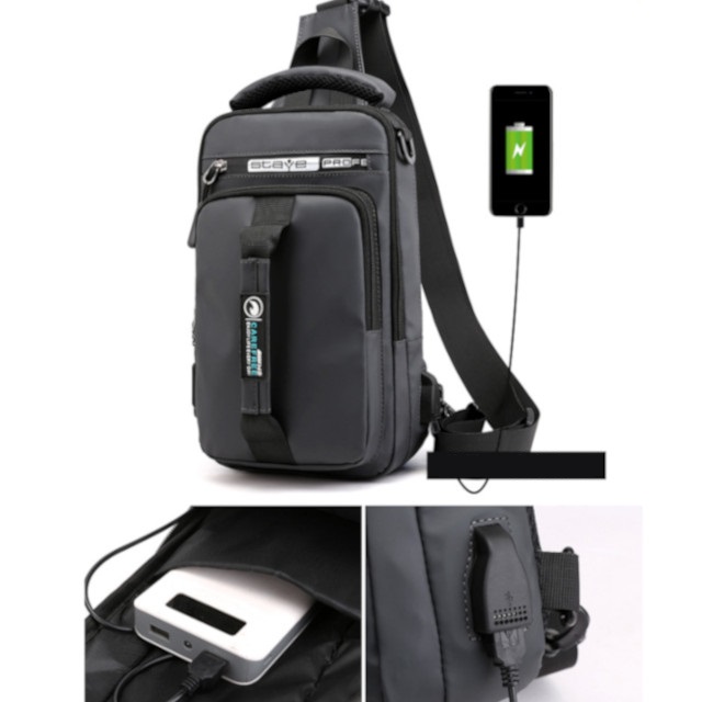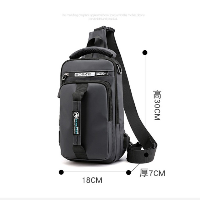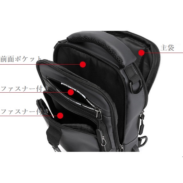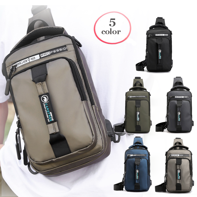ボディバッグ メンズ 5色 ブラック ネイビー カーキ グリーン グレー USB差込口 斜め掛け リュック 送料無料