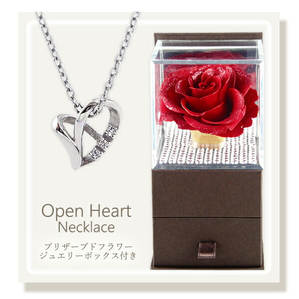 プリザーブドフラワー 花 ネックレス レディース 女性 ハート オープンハート スライドピン 3粒 ジルコニア シルバー 金属アレルギー ペンダント プレゼント スティック ラッピング 母の日 プレゼント 実用的 ギフト
