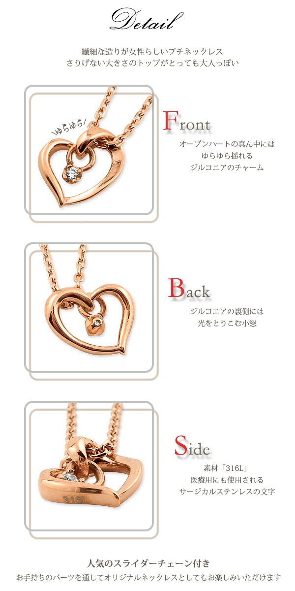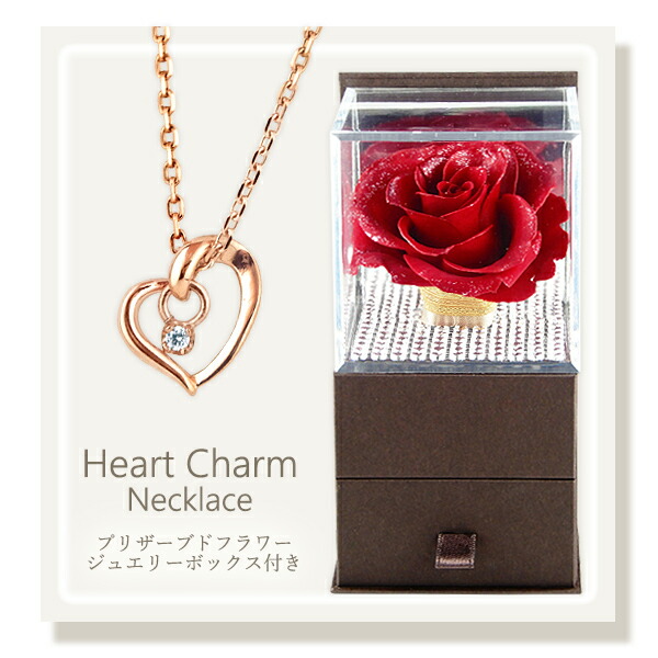 プリザーブドフラワー 花 ネックレス レディース 女性 揺れるチャーム スライドピン ハート オープンハート 1粒 ジルコニア ピンク 金属アレルギー ペンダント スティック ラッピング プレゼント ギフト 母の日 実用的