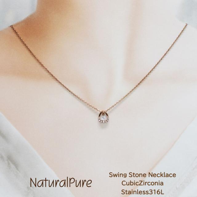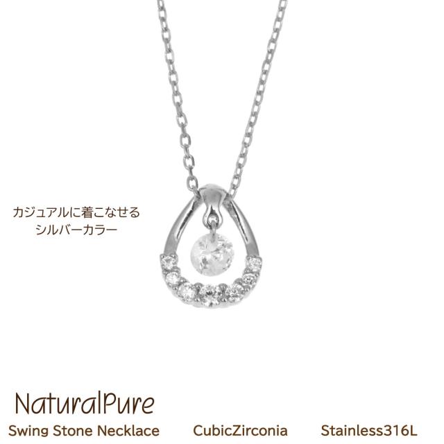 ネックレス ペンダント レディース 20代 30代 40代 50代 ステンレス 石が揺れる ストーンが揺れる シルバー ゴールド ラインストーン 金属アレルギー 対応