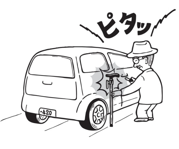 車のボディや冷蔵庫などの磁石がつく場所にくっつけることができます。車に乗るときや日常生活の中で、杖を一時的に置いておきたい場面で便利です。杖を吊り下げることは出来ないので、杖先を地面に付けた状態で使用してください。杖が倒れてしまうことを防いでくれます。