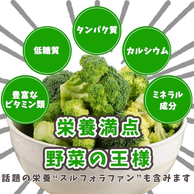 | 商品説明 | ■カロリー表示:27kcal/100g 低カロリーや低糖質であるため身体を鍛えている方やカロリーを気にしている方にオススメの食材です。 ブロッコリーはとても栄養価が高く、特にビタミンCはレモンより多く含まれております。 他にもたんぱく質、ビタミンE、葉酸、カリウム、クロム、カロテン、食物繊維、スルフォラファンなどたくさんの種類の栄養素が含まれています。 |
