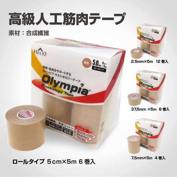 キネシオ 合成繊維 19mm×5m 16巻 37.5mm×5m 8巻 50mm×5m 6巻 75mm×5m 4巻 オリンピア キネシオロジーテープ ロールタイプ テーピング テーピングテープ キネシオテープ 伸縮性 伸縮テープ マラソン 膝 足首 手首 ふくらはぎ