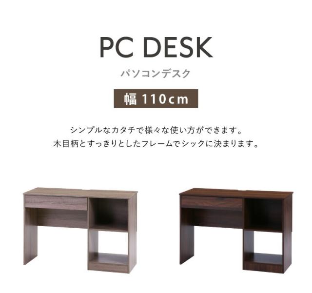 組立簡単 片袖デスク パソコンデスク 幅110 奥行40 高さ74.5 シンプル おしゃれ オフィスデスク 学習デスク 引き出し 木目 木製【送料無