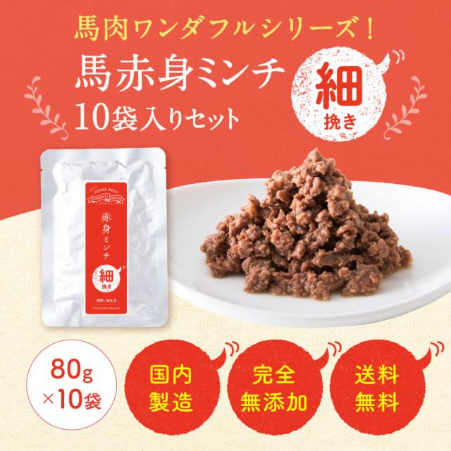犬 馬肉 缶詰め ドッグフード 無添加 国産 100%馬肉 赤身ミンチ ( 細挽き ) 800g ( 80g × 10袋 ) ペット 犬用 ウェットフード 犬 手作り ご飯 赤身肉 食いつき シニア 水分 レトルト 送料無料 健康いぬ生活 公式