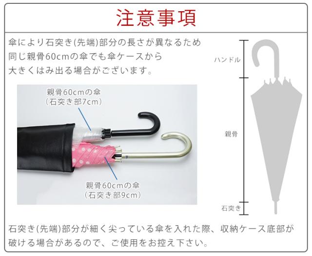 ※石突き(先端)部分が細く尖っている傘を入れた際、収納ケース底部が破ける場合がある ので、ご使用をお控え下さい。