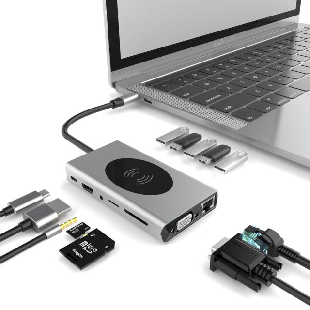 Type-C to HDMI / VGA LAN 13in1 USBハブ 多機能 Type-C Hub USB3.0 / HDMI / VGA / SD / TF カードリーダー 4K ワイヤレス充電 3.5MMオーディオ