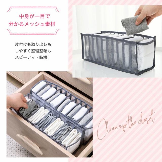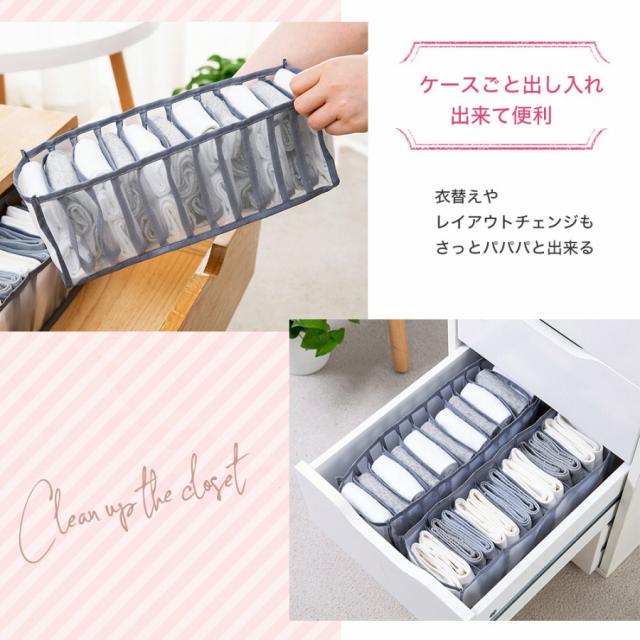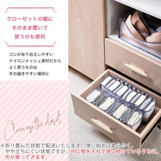 引き出しの中の下着・靴下・ハンカチなど細かな衣類をすっきり収納してくれるメッシュ仕切りです。