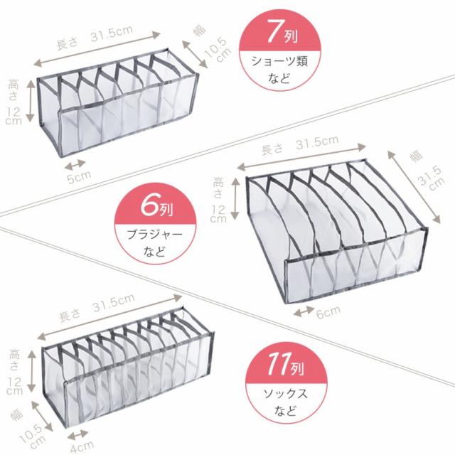 ●商品内容: 6列・7列・11列タイプそれぞれ1個の合計3個セット。引き出しの中の分割収納・整理整頓に便利