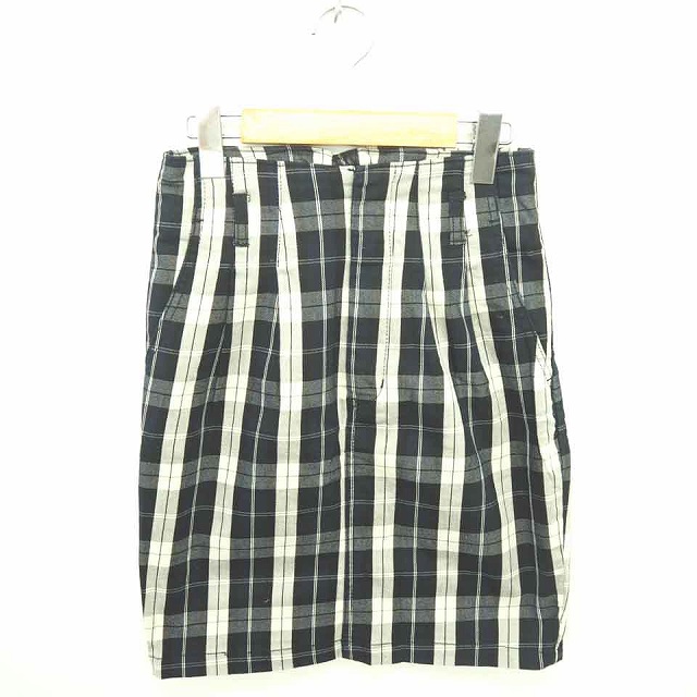 【中古】ヘザー Heather スカート タイト ミニ チェック フロントジップ 綿 コットン 薄手 S ネイビー ライトベージュ