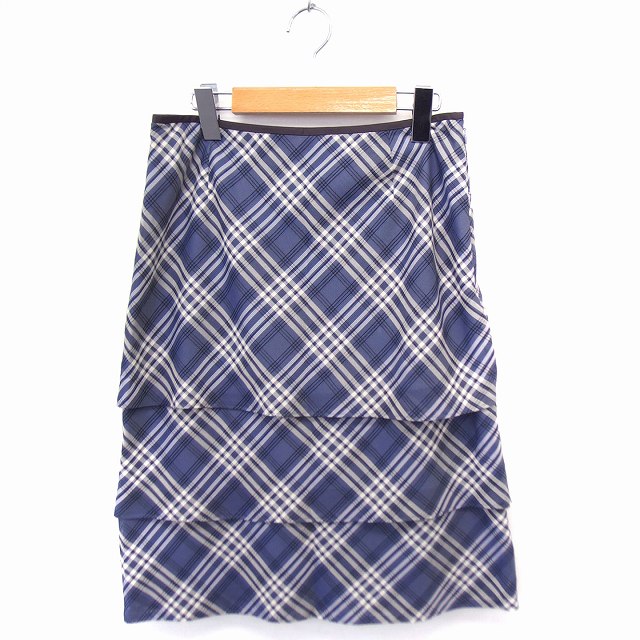 【中古】STYLE ME スカート チェック ティアード ロング スリット グレー 灰 /FT29 レディース