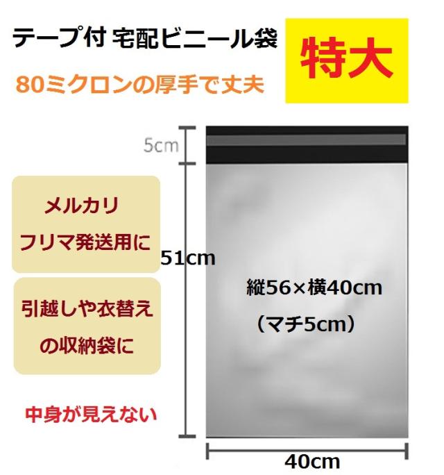 ビニール袋 宅配袋 特大 大きい 梱包袋 テープ付 ポリ袋 大 30L 56×40cm 5枚入り