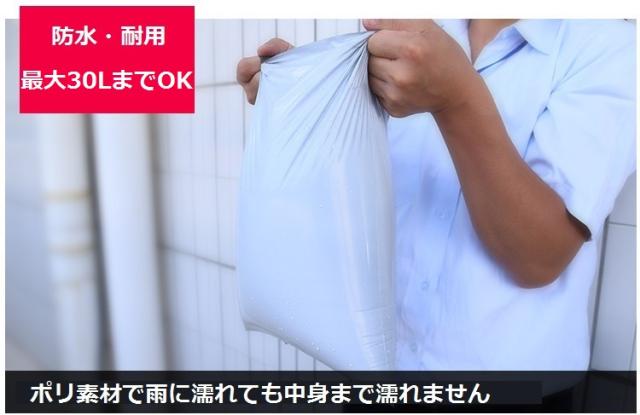 ・ポリ素材で、雨に濡れても中身まで濡れることはありません。