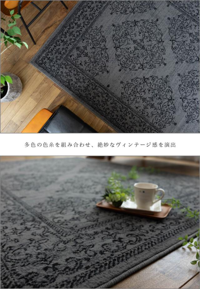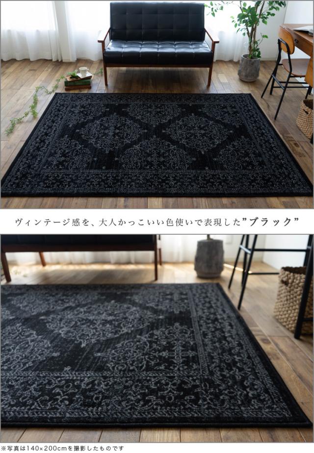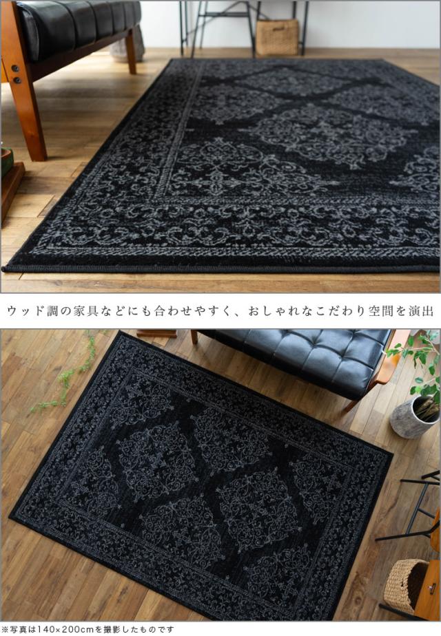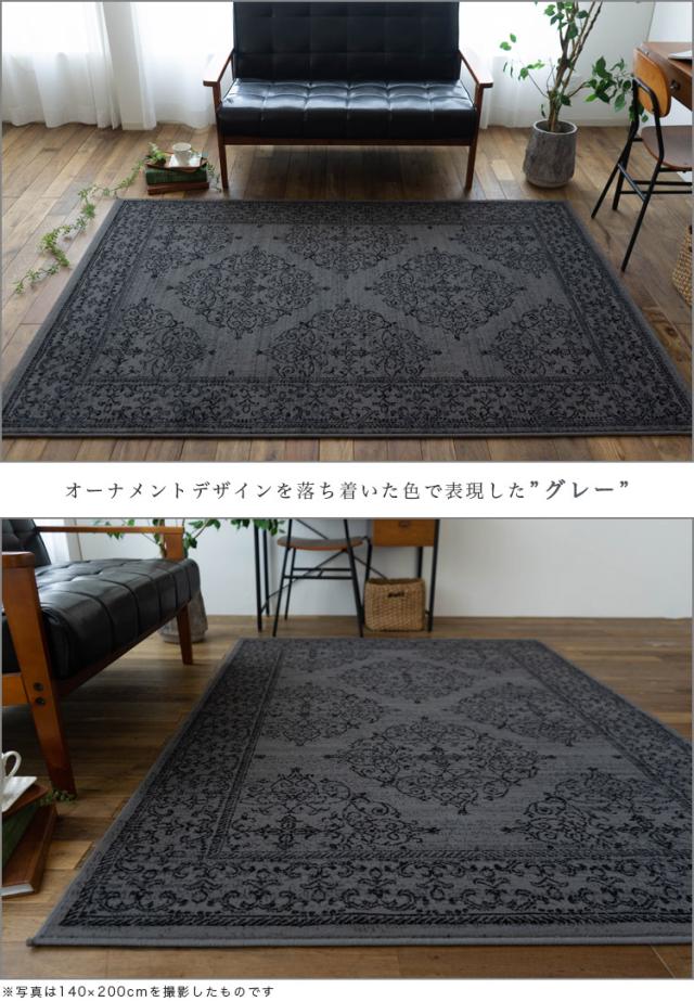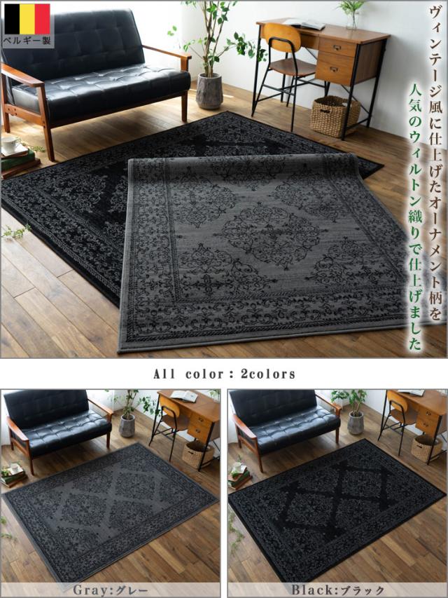 クラシック ラグ 140x200 cm 約 1.5 畳 絨毯 オーナメント スタイリッシュ ベルギー じゅうたん アクセント ラグ マット ウィルトン 織り グレー ブラック おしゃれ カーペット インテリア 送料無料