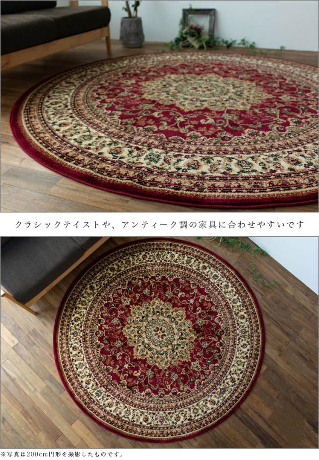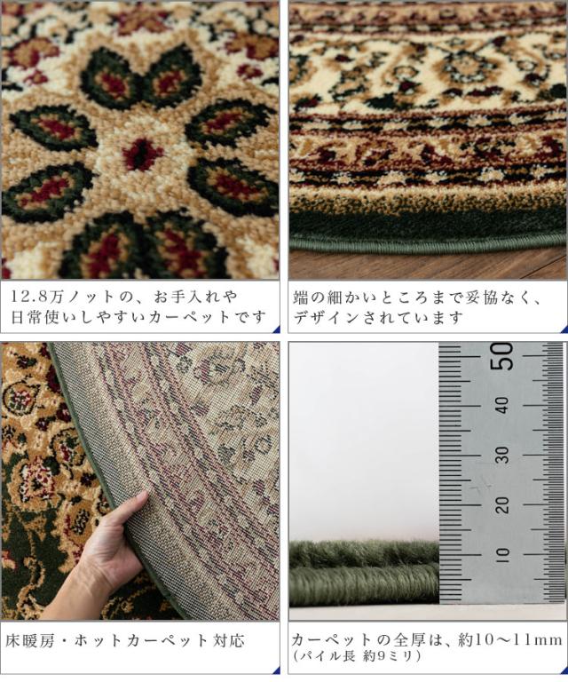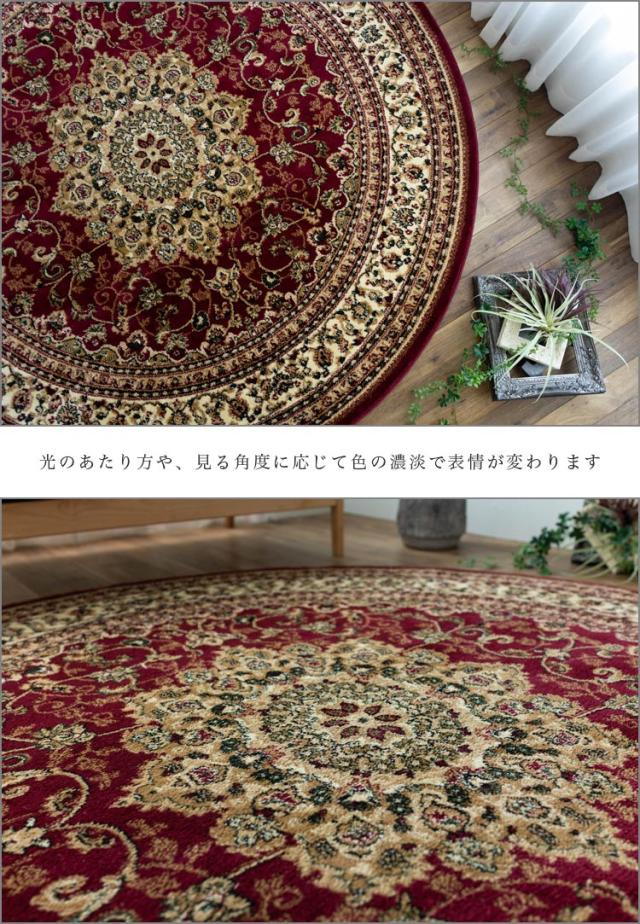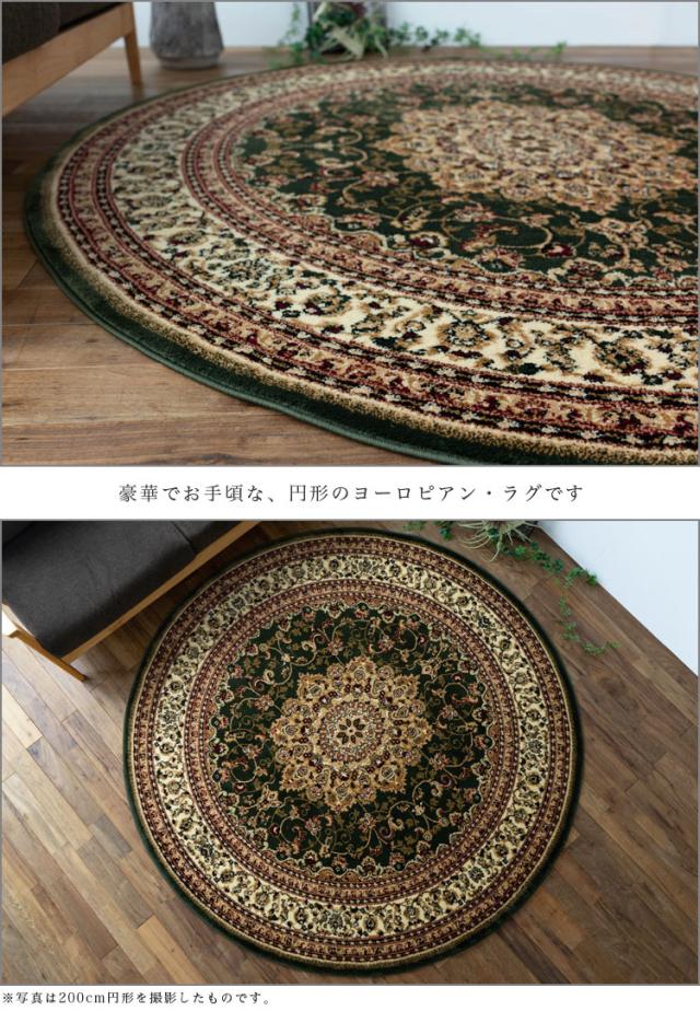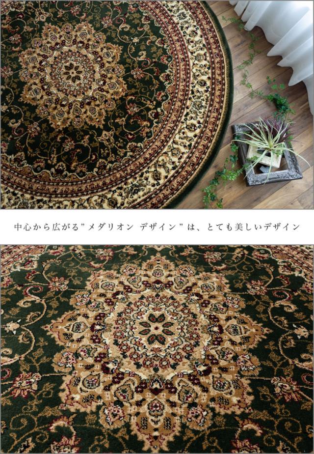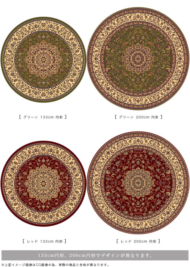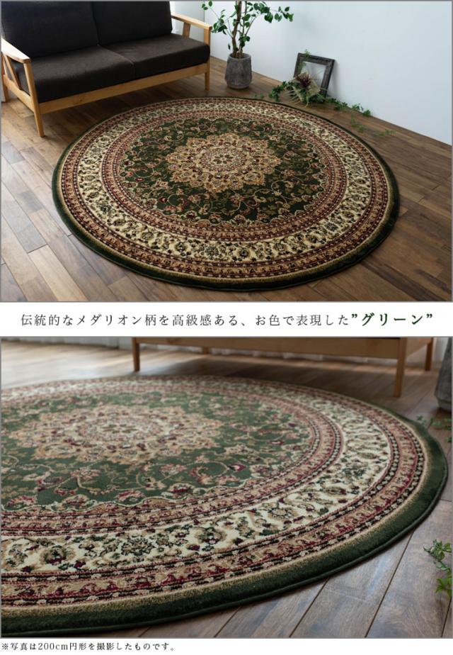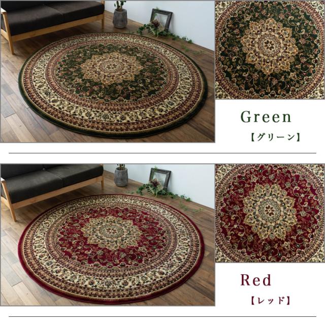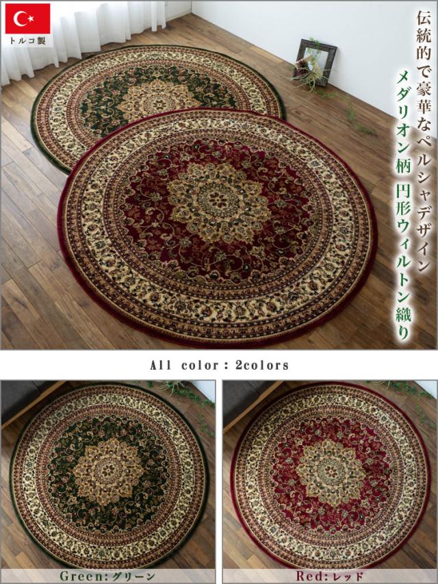 円形 133cm メダリオン トルコ 製 絨毯 じゅうたん ペルシャ ウィルトン織り グリーン レッド 緑 赤 ヨーロピアン ラグ マット カーペット ラグマット 送料無料