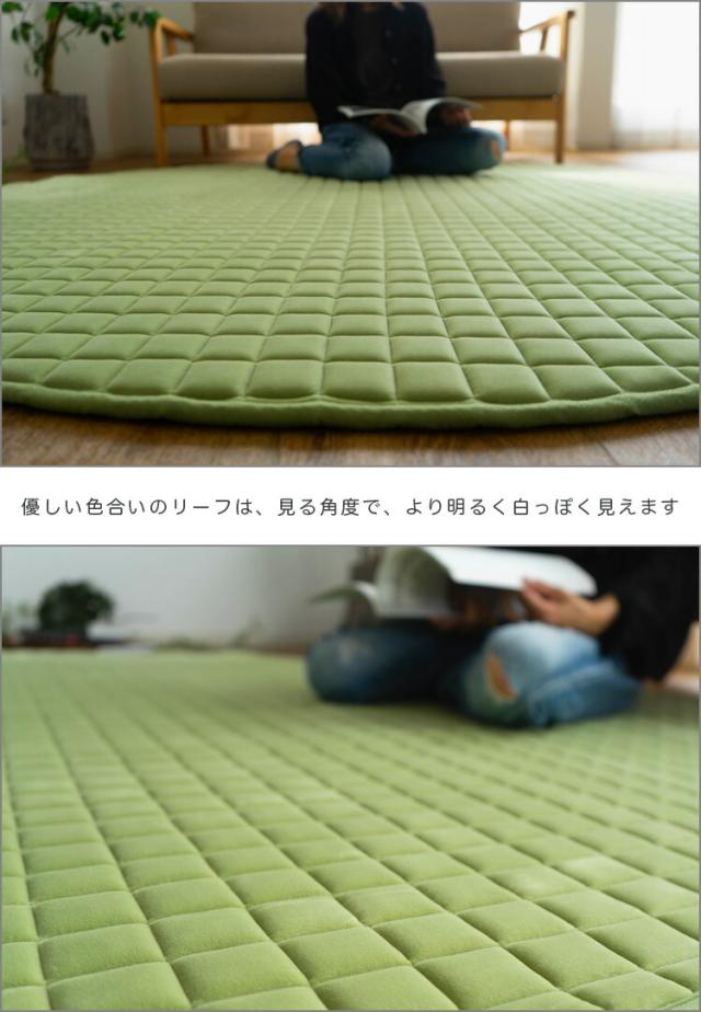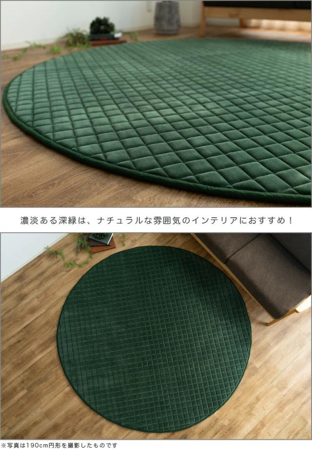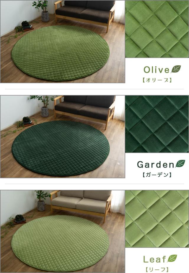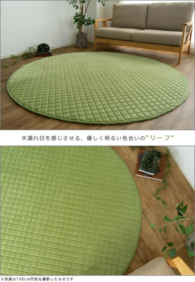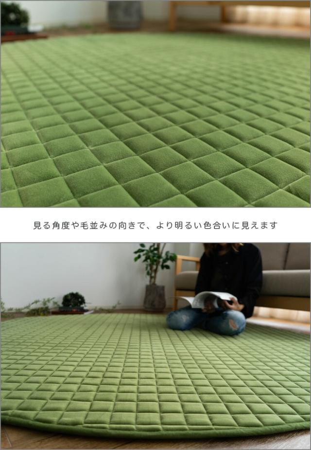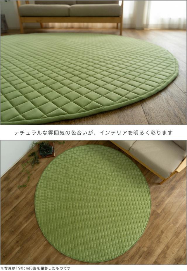 円形 ラグ オールシーズン 洗える 140 cm キルト グリーン 緑 ラグマット カフェ 北欧 ウレタン カーペット 絨毯 じゅうたん アクセント おしゃれ かわいい 丸形 丸型 直径 送料無料 厚手