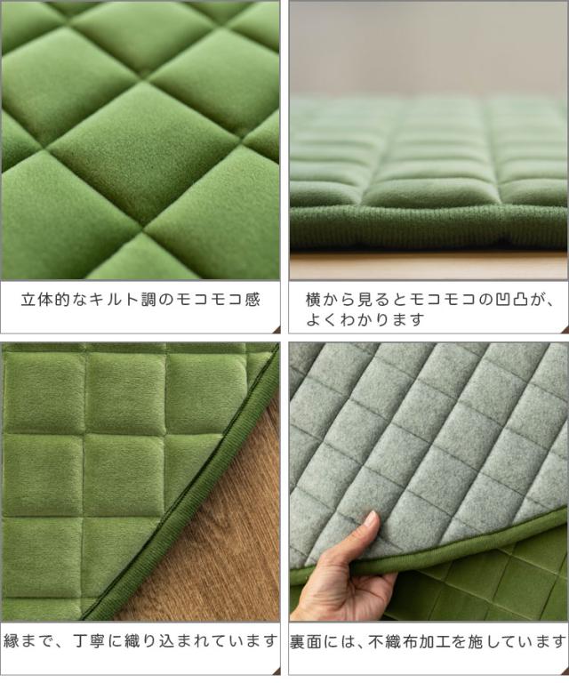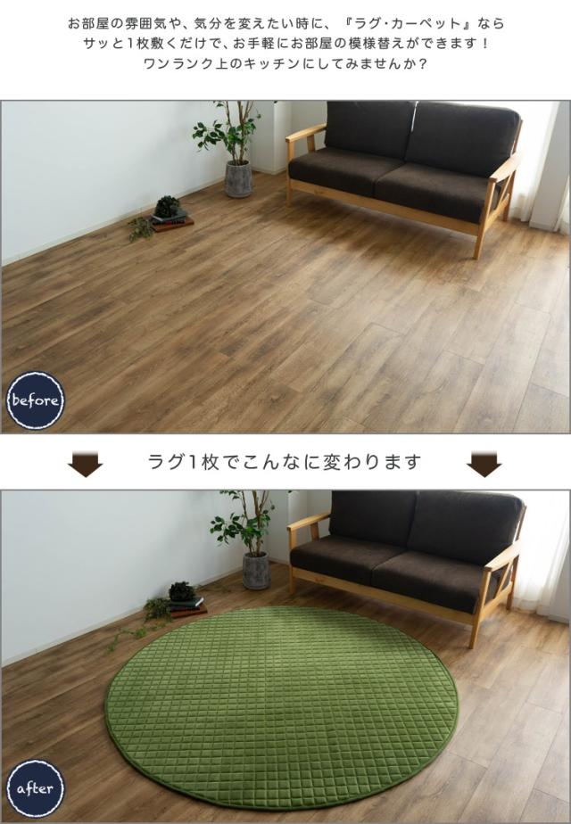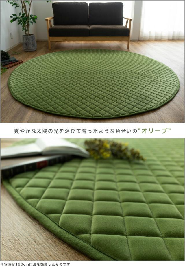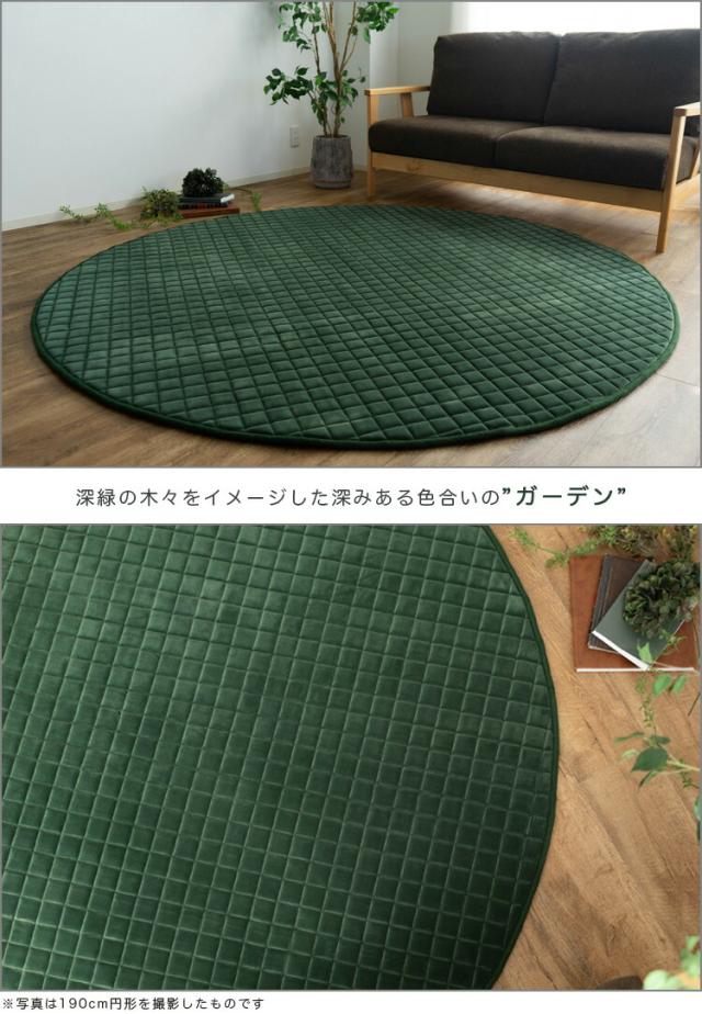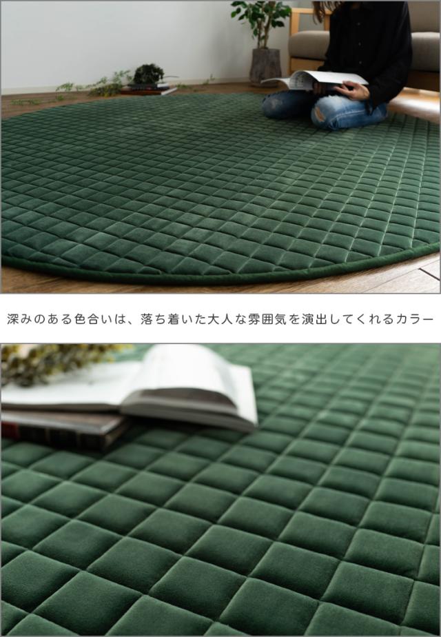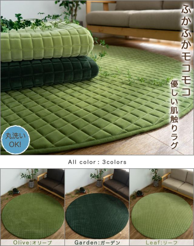 円形 ラグ オールシーズン 洗える 140 cm キルト グリーン 緑 ラグマット カフェ 北欧 ウレタン カーペット 絨毯 じゅうたん アクセント おしゃれ かわいい 丸形 丸型 直径 送料無料 厚手
