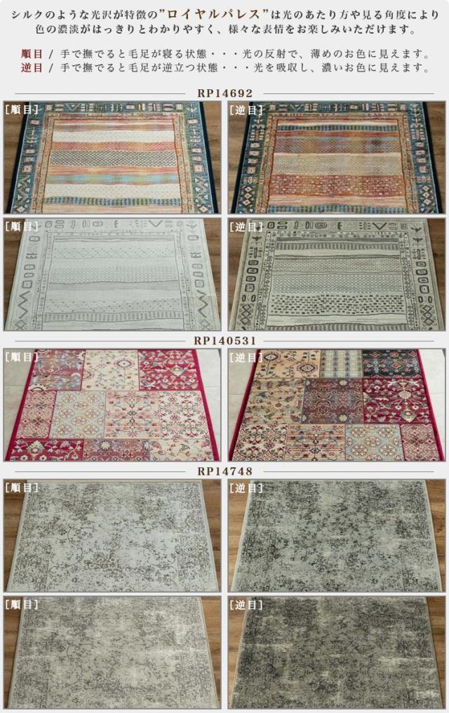 | デザイン・カラー | ■ロイヤルパレス14692: マルチ、ベージュ ■ロイヤルパレス14531: レッド ■ロイヤルパレス14748: グレー、ブラウン、アイボリー ■ロイヤルパレス14684: オレンジ、グリーン |