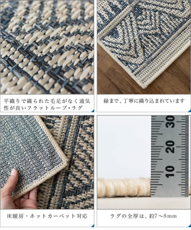 ラグ表面の肌触りは、フラット織りのため